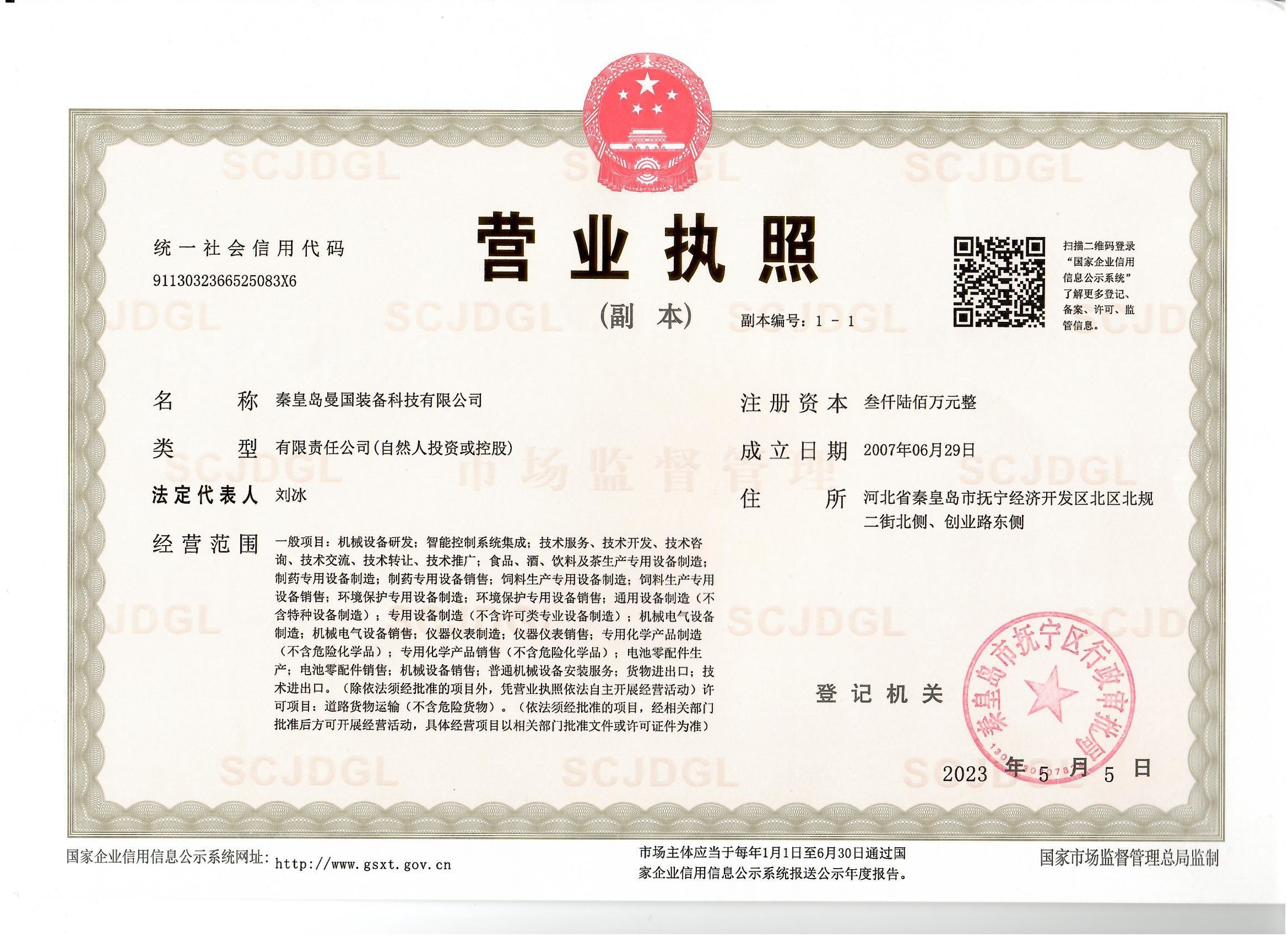 秦皇島曼國裝備科技有限公司